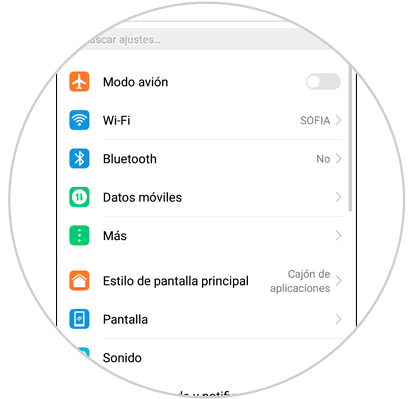 El proceso para nuestro equipo móvil no difiere demasiado, para esto el primer paso es acceder a los ajustes del Android desplegando la pantalla superior o bien usando el cuadro de búsqueda: