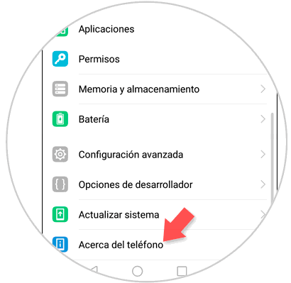 La otra opción es ir a la parte inferior de los ajustes donde veremos la misma opción “Acerca del teléfono”: