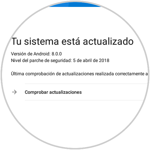 Si pulsamos sobre esta opción encontraremos que el sistema se encuentra actualizado en la versión 8.0 (Oreo). En caso de existir una nueva actualización y que el equipo sea compatible podremos descargarla y aplicarla allí.