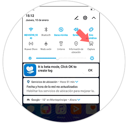 Aquí, entre las opciones, verás un icono de unas tijeras llamado “Captura”. Pulsa sobre el y se realizará una captura de pantalla de lo que veas en la pantalla en ese momento.