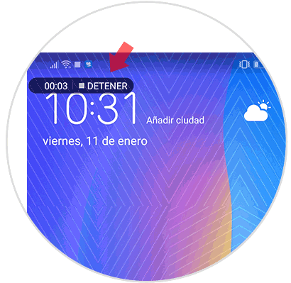 Al comenzar la grabación, aparece en la parte superior izquierda de la pantalla una barra indicativa del tiempo de grabación y un swich que dice “Detener” donde debemos presionar cuando lo consideremos conveniente.