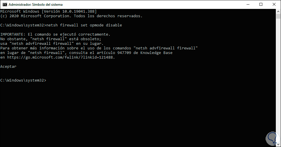 Para desactivar Windows Defender o el Firewall ejecutamos lo siguiente:
