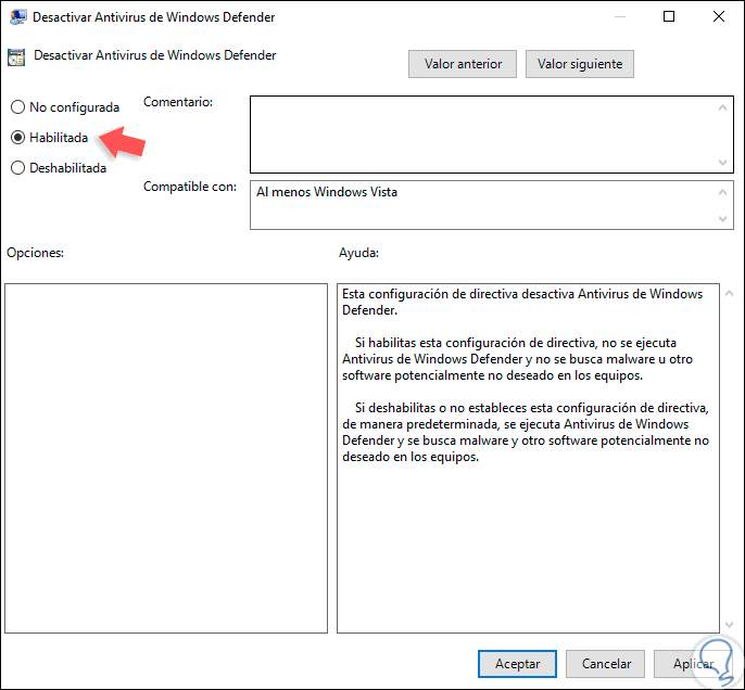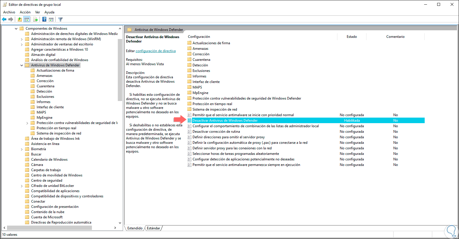 2. Desactivar Windows Defender en Windows 10 desde GPO