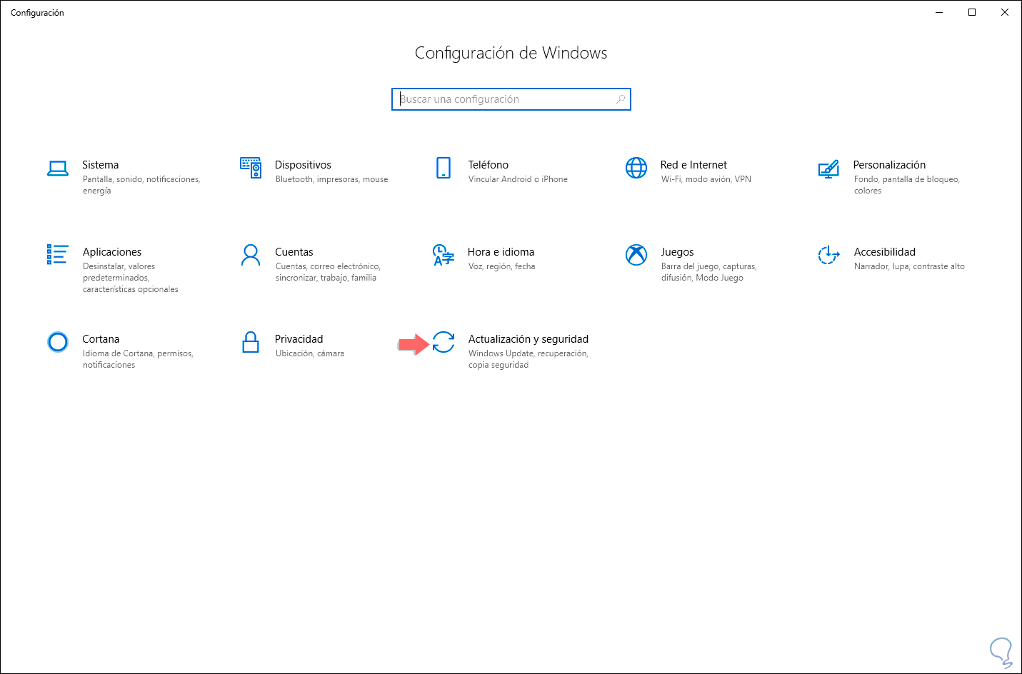 Allí seleccionamos la categoría “Actualización y seguridad” y en la siguiente ventana vamos a la sección “Seguridad de Windows”: