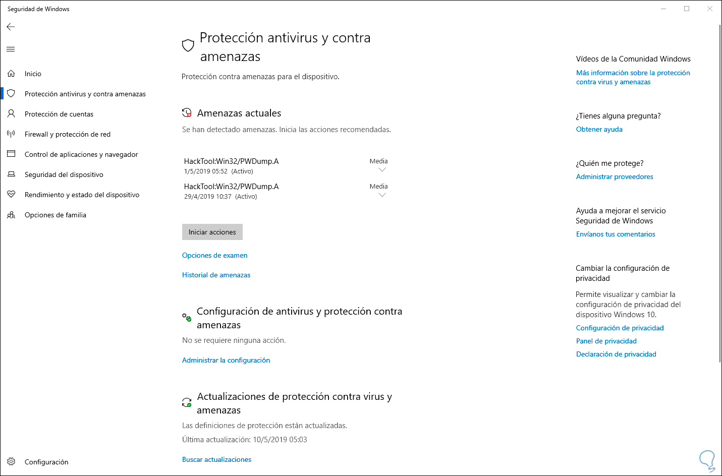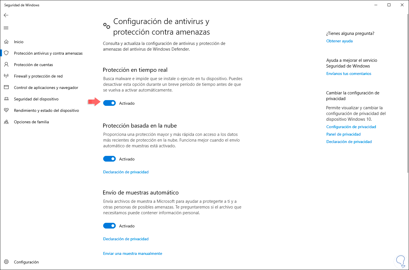 1. Desactivar Windows Defender en Windows 10 desde Configuración