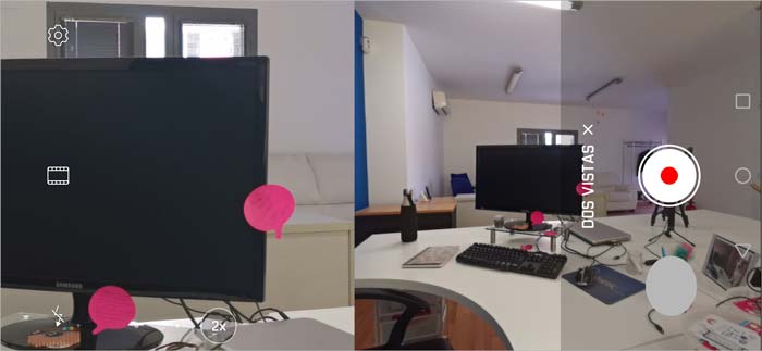 Además, gracias al zoom, tenemos la posibilidad de grabar vídeos con doble visión para poder ver en una misma toma, dos imágenes iguales, pero a distinta distancia. Se utiliza de manera simultánea la cámara principal y la lente del zoom del Smartphone, permitiendo de este modo mostrar dos perspectivas a la vez en la pantalla.