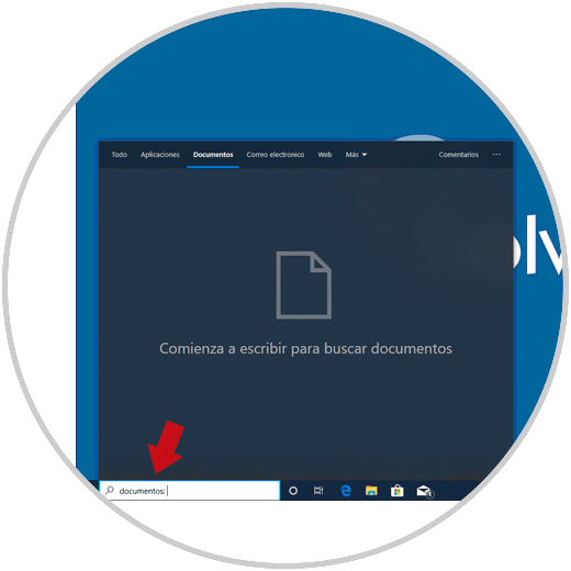 Damos clic en el cuadro de búsqueda y allí vamos a seleccionar la categoría “Documentos” o bien podemos ingresar la sintaxis documentos directamente en el cuadro de búsqueda: