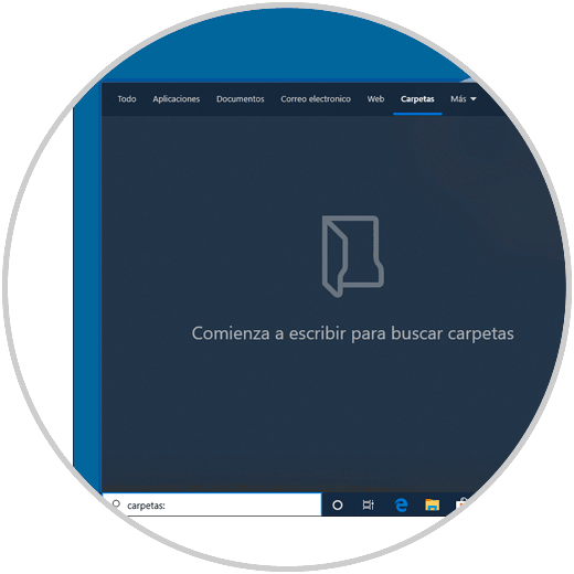 Pues bien, en el cuadro de búsqueda encontramos un apartado llamado “Carpetas” o como ya debes suponer, puedes usar la línea carpetas para ejecutar la acción: