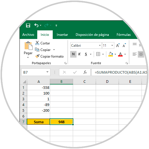 Como resultado se sumarán todos los valores del rango seleccionado, donde tenemos algunos negativos, pero el resultado será un número positivo.