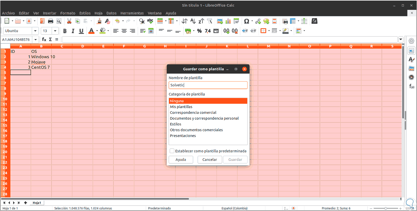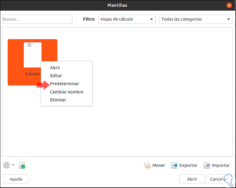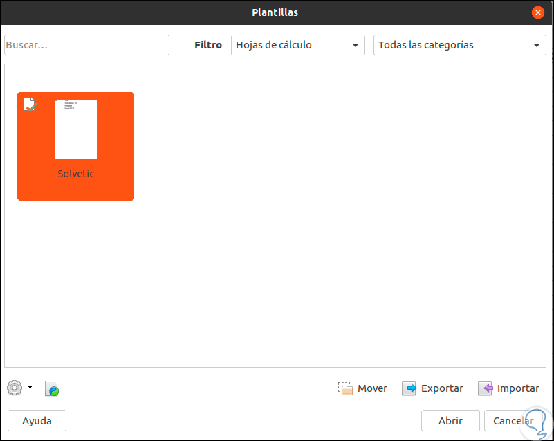 Luego debemos seleccionar la plantilla creada y pulsar en el botón Abrir para que la nueva hoja de cálculo disponga de la configuración que hemos seleccionado: