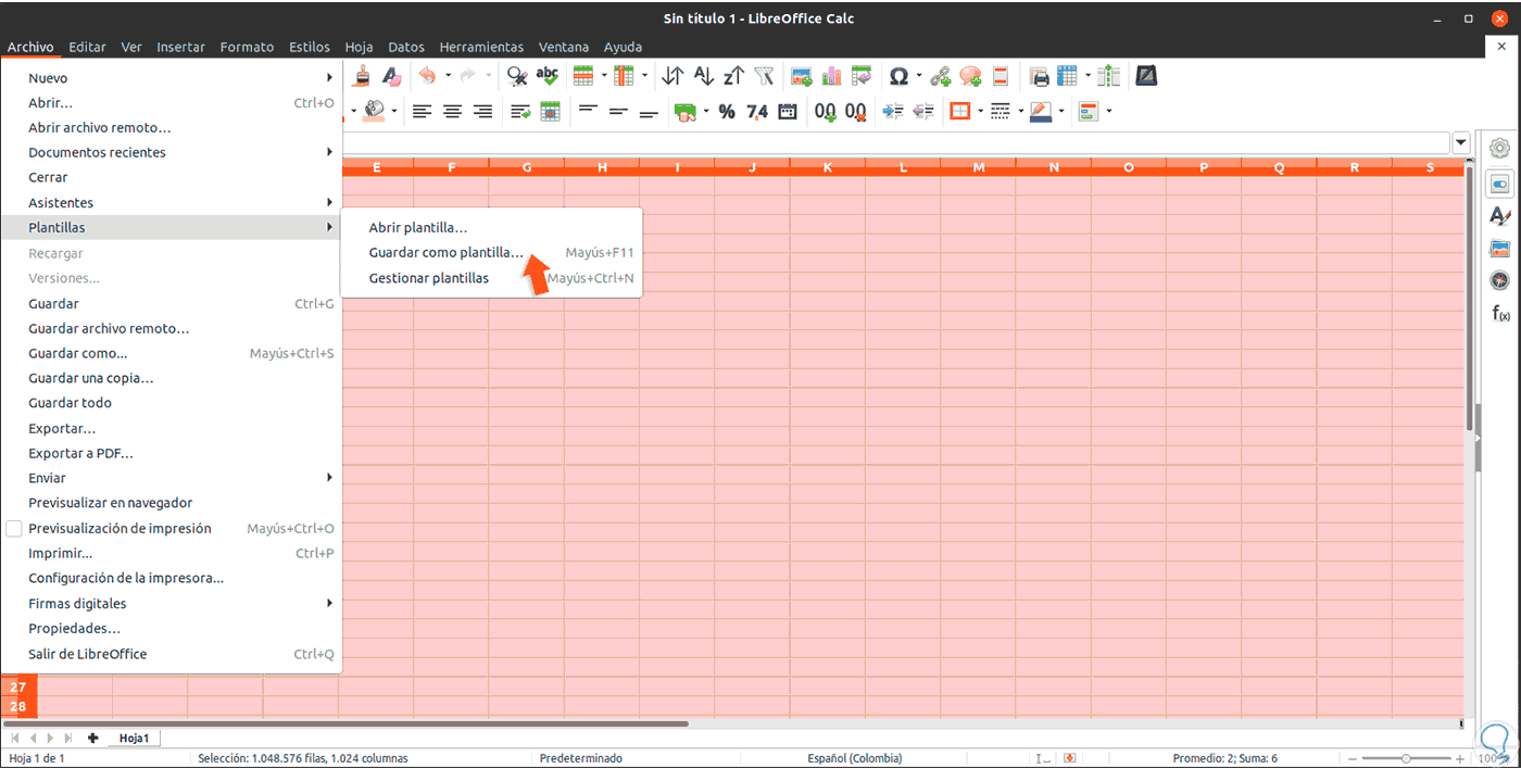 A continuación vamos al menú Archivo / Plantillas / Guardar como plantilla: