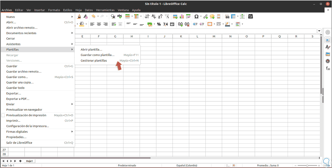 Ahora debemos ir a la ruta Archivo / Plantillas / Gestionar plantillas o bien usar las teclas siguientes: