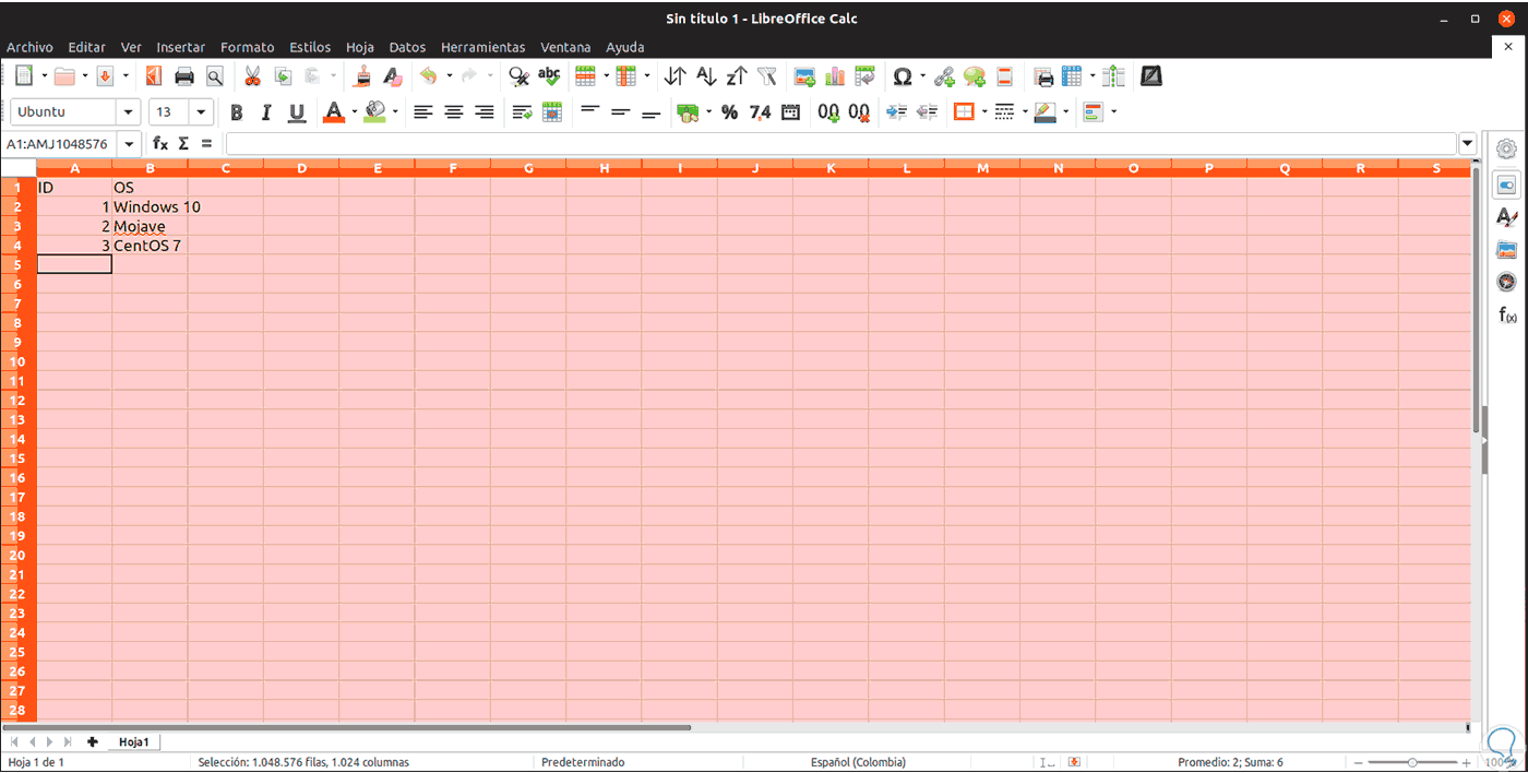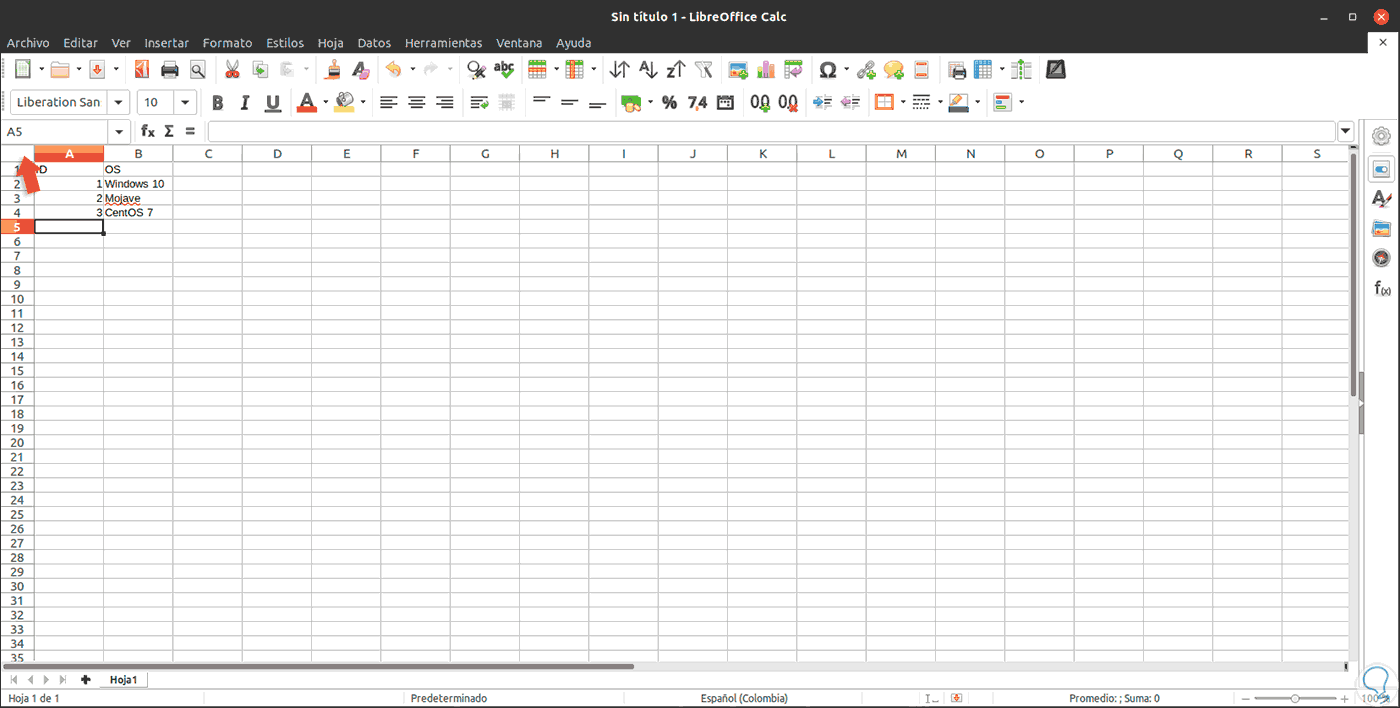 Calc es otra de las aplicaciones usadas con frecuencia en Linux por sus prácticas funcionalidades a la hora de trabajar con diversos tipos de datos, en el caso de la fuente por defecto en Calc encontramos que es Liberation Sans en un tamaño de 10 puntos: