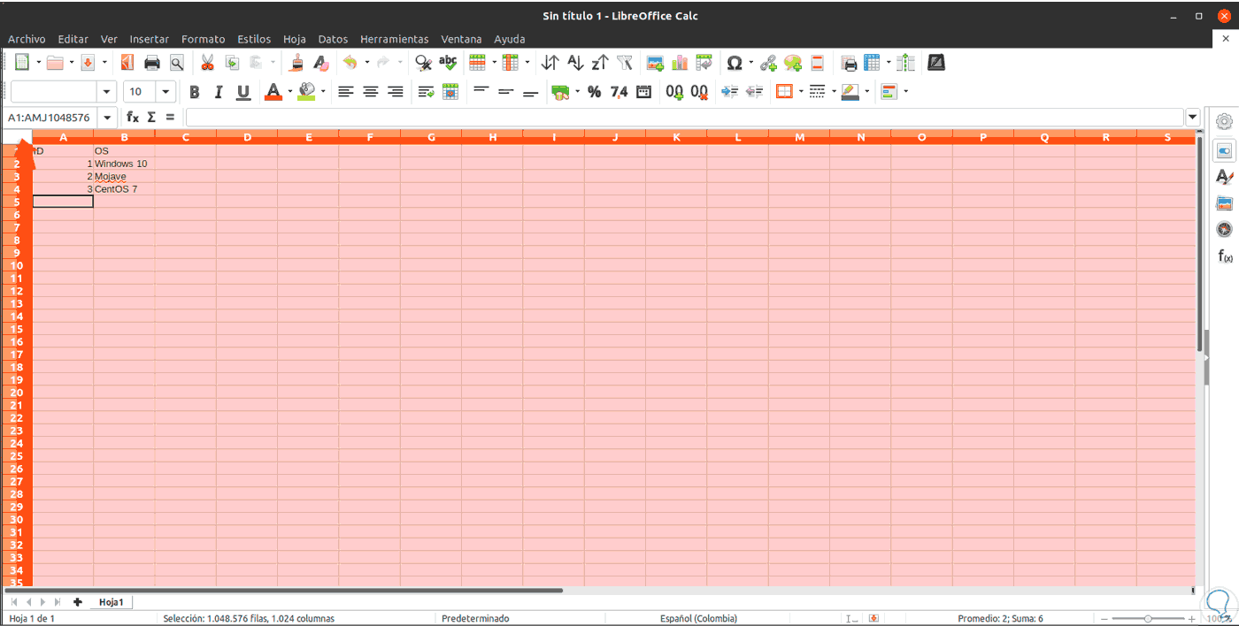 Como extraño, las hojas de cálculo tienen procedimientos un poco diferentes, para el caso de Calc será necesario crear una plantilla y para ello en primer lugar seleccionaremos todas las celdas de la hoja dando clic en el ícono ubicado en la esquina superior izquierda de la hoja: