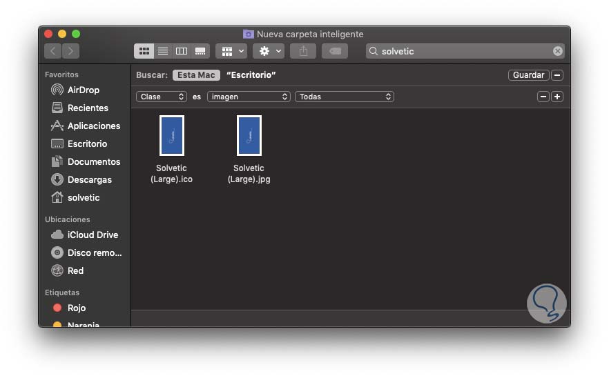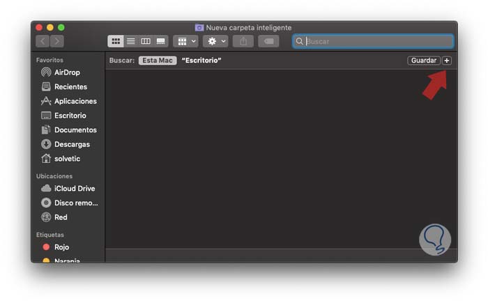 El Finder es el lugar donde por defecto podremos buscar todos los archivos que están alojados en el equipo y por tanto es el método más recomendado por Solvetic ya que evita la instalación de software adicional. Para usar este método debemos crear una carpeta inteligente la cual, permite que posea propiedades especiales para el trabajo y administración de los archivos allí almacenados.