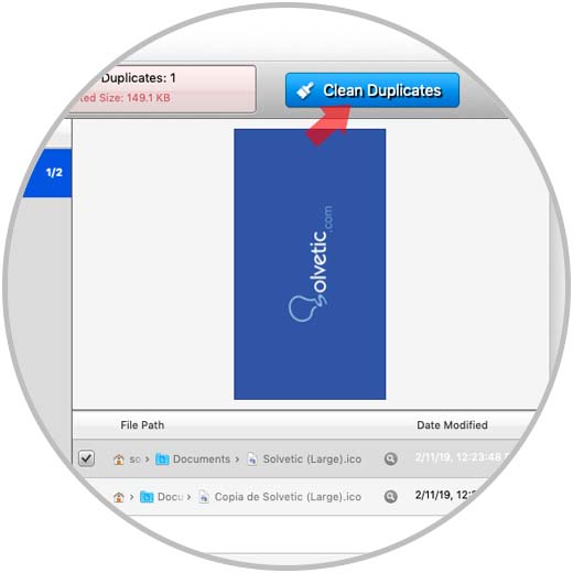 Allí activamos la casilla del archivo a eliminar en el costado lateral derecho y se activará el botón “Clean Duplicates”: