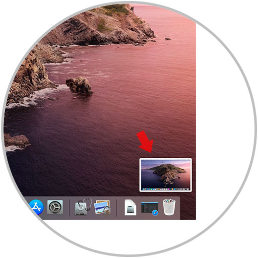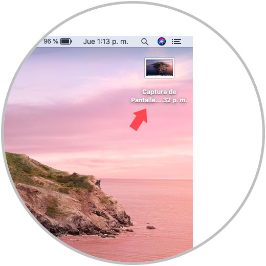 Allí podríamos arrastrarla directamente al papelera si ha sido tomada por error o bien dar clic sobre ella para acceder a la edición, pero si no hacemos ninguna acción, en 5 segundos la imagen quedará guardada por defecto en el escritorio de macOS Catalina: