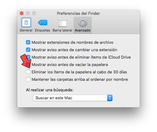 Otra de las opciones que tenemos para mantener nuestro Mac limpio y que con ello mejore su velocidad, es activar que la papelera se borre los archivos cuando hayan pasado 30 días. Para ello debemos hacer lo siguiente.