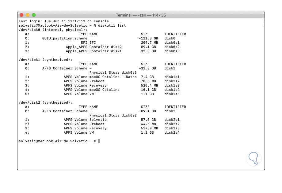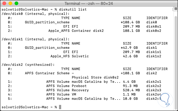 Allí podemos encontrar una de las diferencias de macOS Catalina, ya que anteriormente al ejecutar esta orden veíamos lo siguiente.