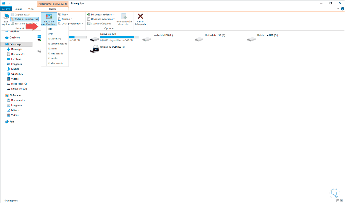 2. Buscar archivos por fecha Windows 10 con ratón