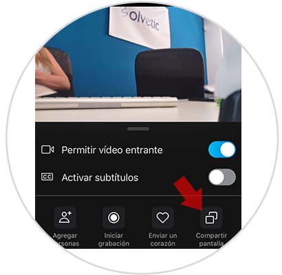 Ahora verás que aparece la opción de "compartir pantalla". Debes seleccionarla.