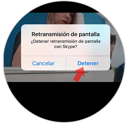 Para dejar de compartir la pantalla, debes pulsar la franja roja superior, y seleccionar "detener" en la ventana emergente.