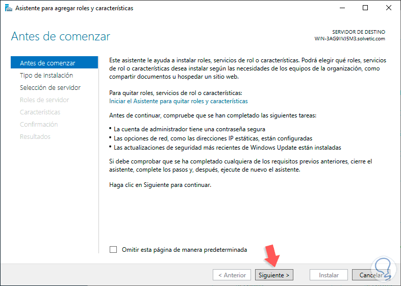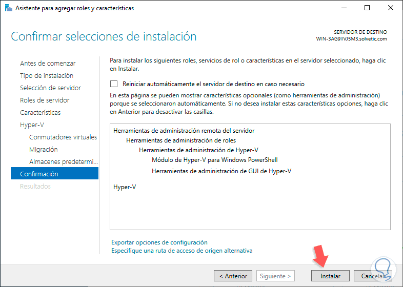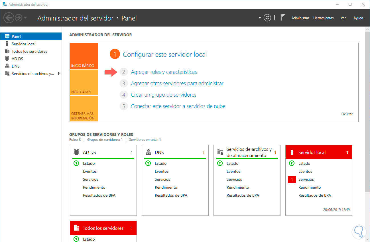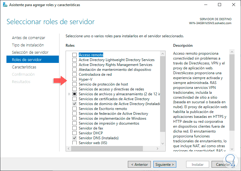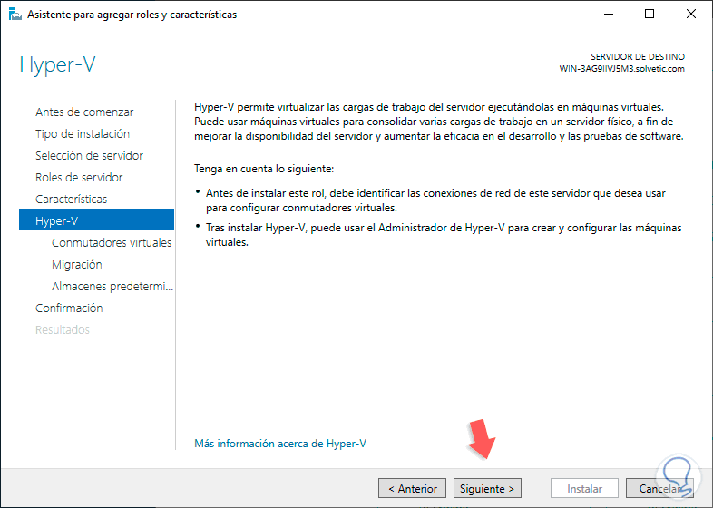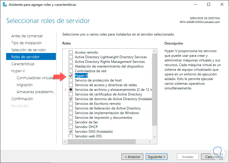 1. Habilitar Hyper-V usando el Administrador del servidor en Windows Server 2019