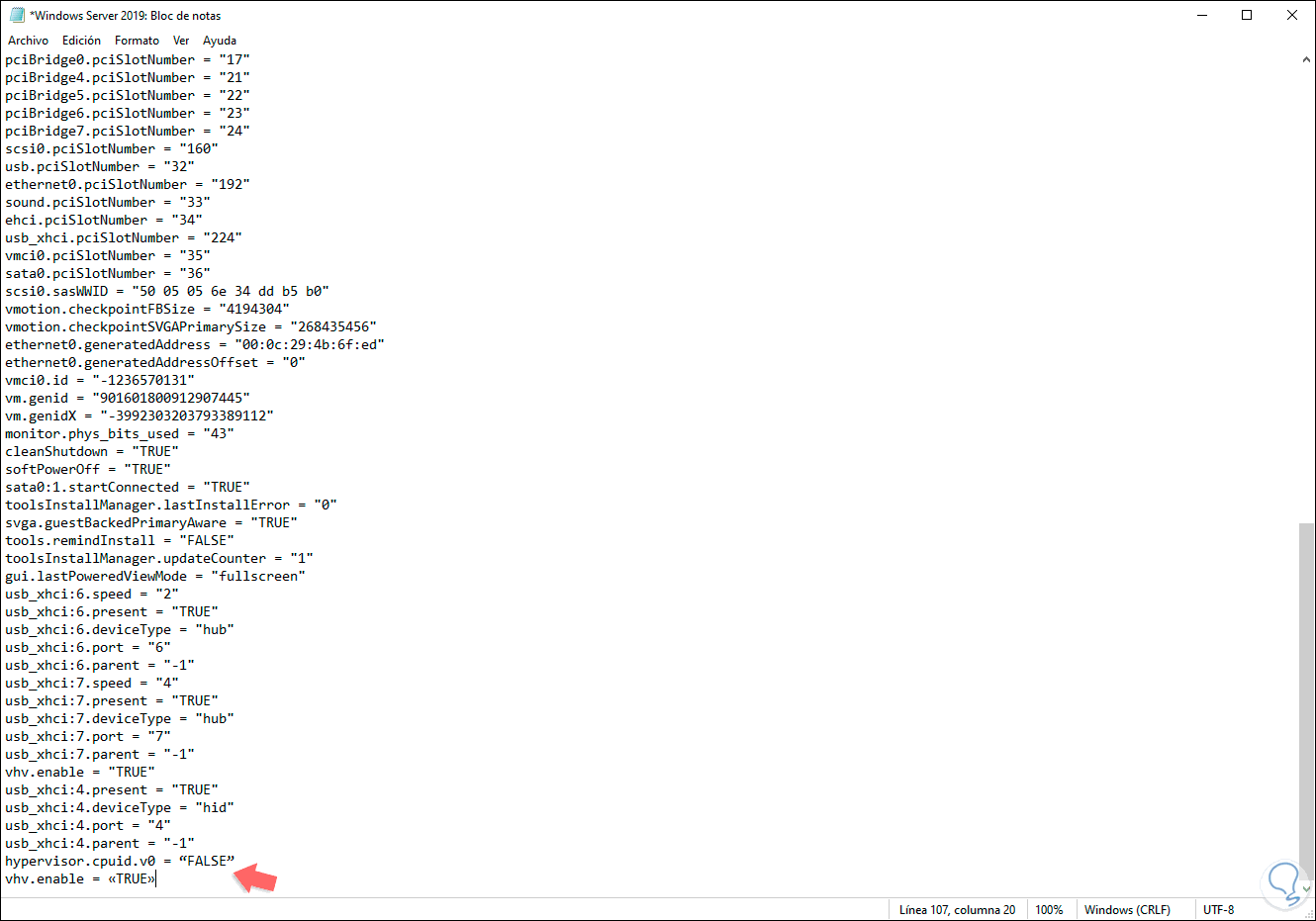 hypervisor.cpuid.v0 = “FALSE” vhv.enable = «TRUE»