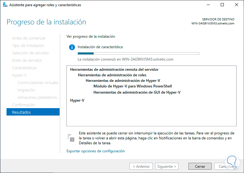Ahora será posible ver que se ha activado el rol de Hyper-V antes de continuar con el proceso: