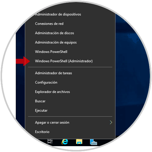 El primer paso a dar es acceder a Windows PowerShell como administradores dando clic derecho en el menú Inicio y seleccionando la respectiva opción: