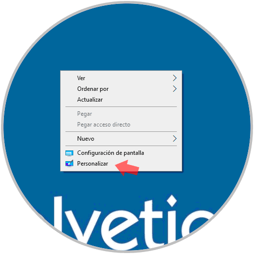 Para lograr esta meta debemos dar clic derecho en el escritorio y en las opciones desplegadas seleccionar “Personalizar”: