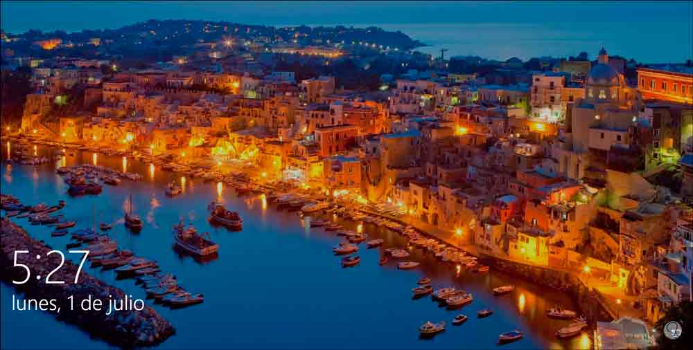 Windows 10 integra el Fluent Design en su pantalla de bloqueo así que cuando accedemos al sistema vemos lo siguiente:
