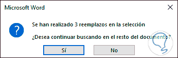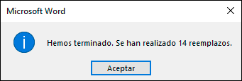 Damos clic en “Reemplazar todos” y recibiremos un mensaje indicando cuántos cambios han sido efectuados: