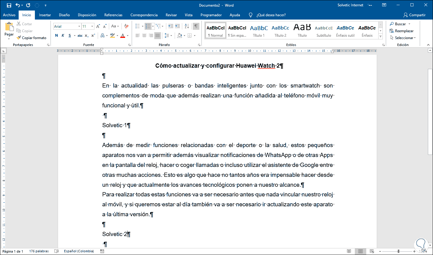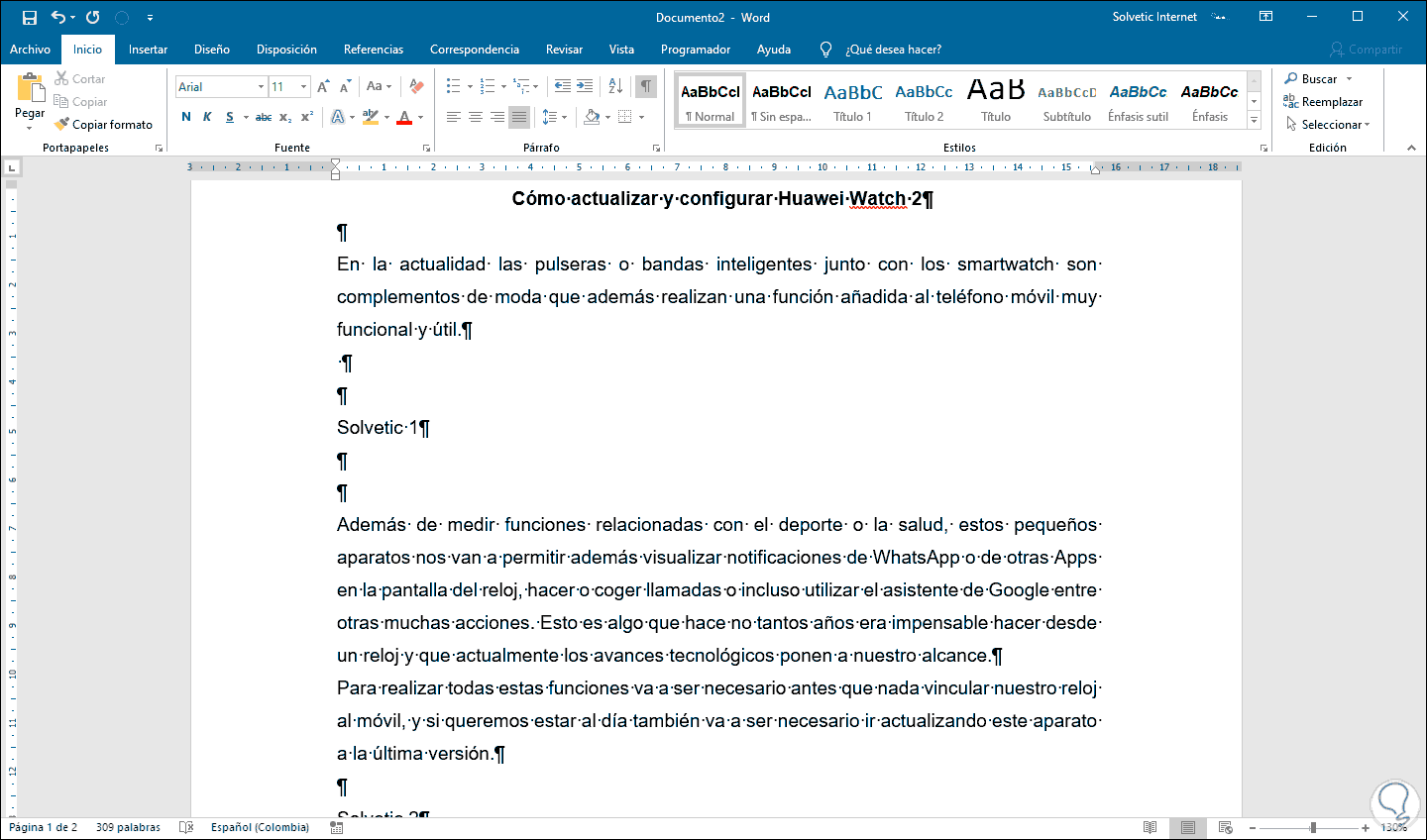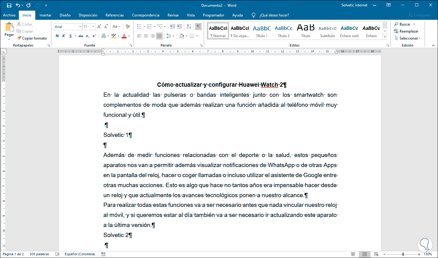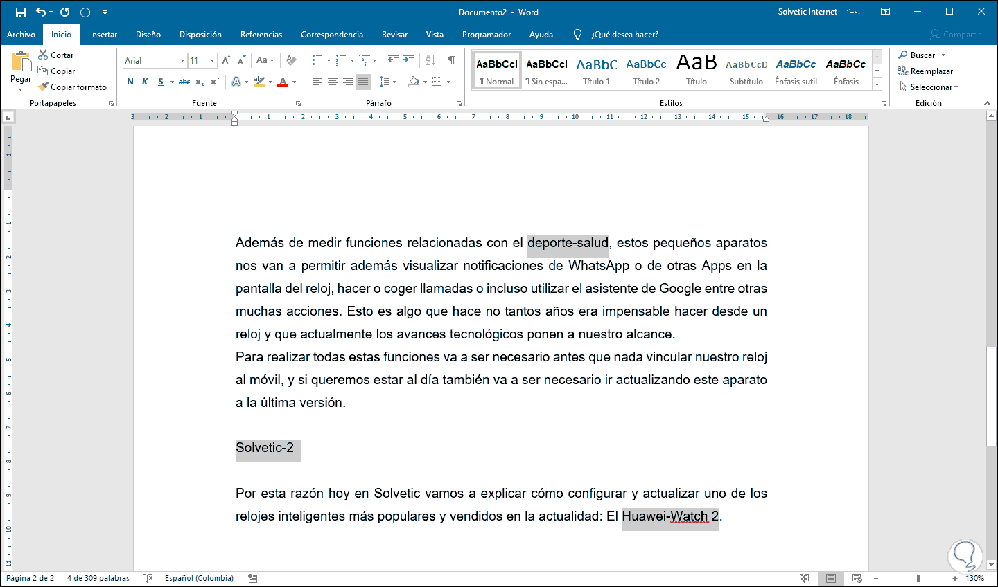 Pulsamos en Aceptar y veremos el cambio en el archivo de Microsoft Word 2016 o 2019:
