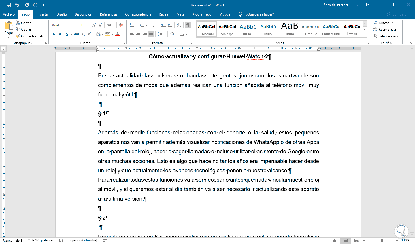 Disponemos de un documento en el cual veremos la estructura de las secciones dando clic en el icono “Mostrar todo” o usando las teclas siguientes: