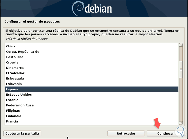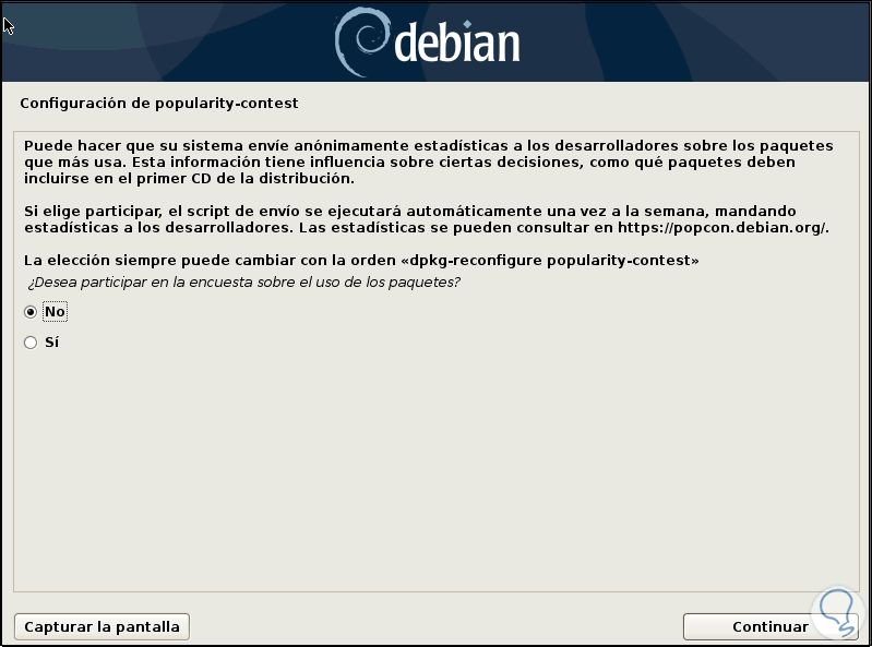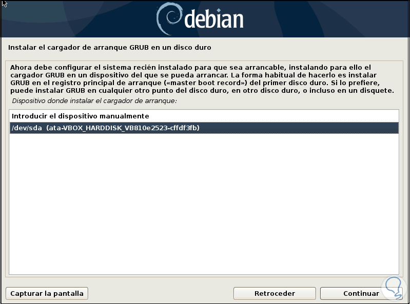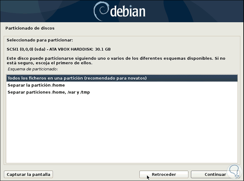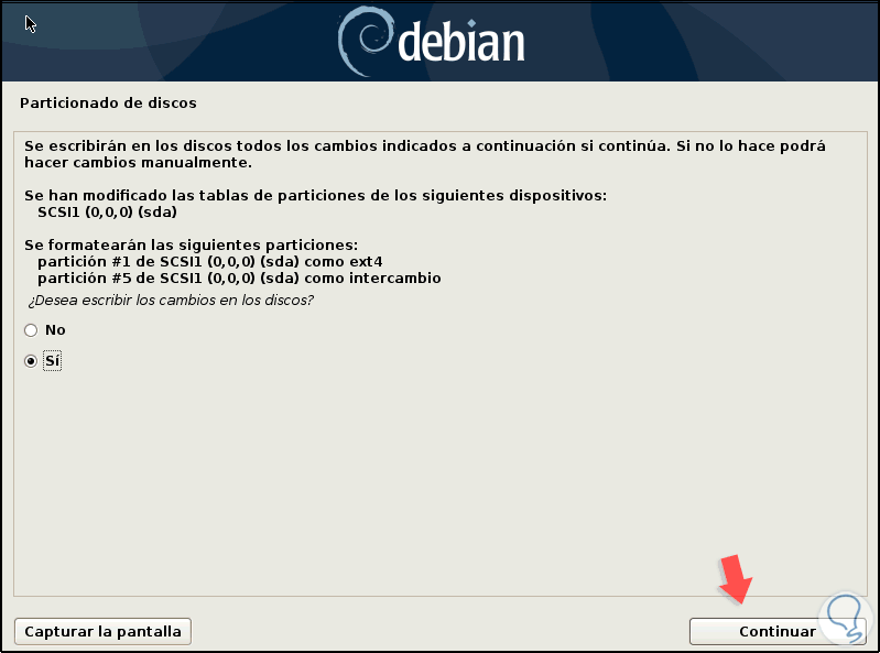 Una vez analizada seguirá el proceso de instalación de Debian 10: