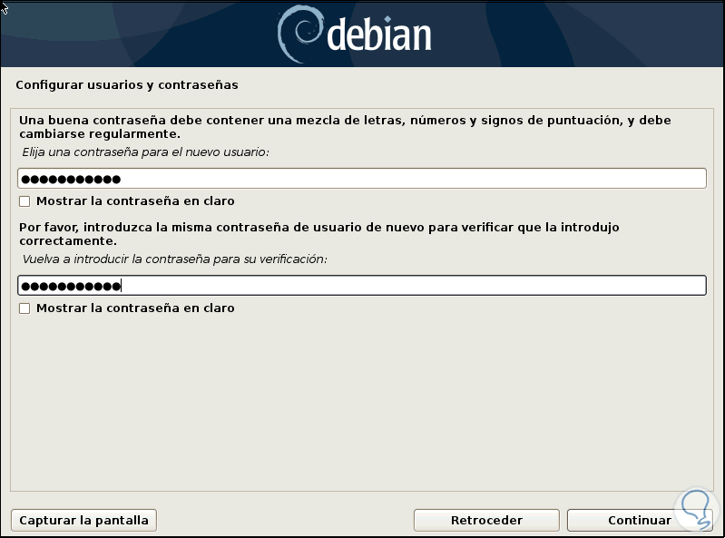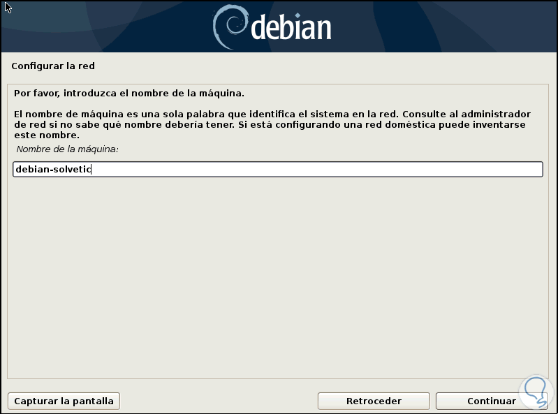 Cuando este proceso concluya, es hora de asignar un nombre a la máquina Debian: