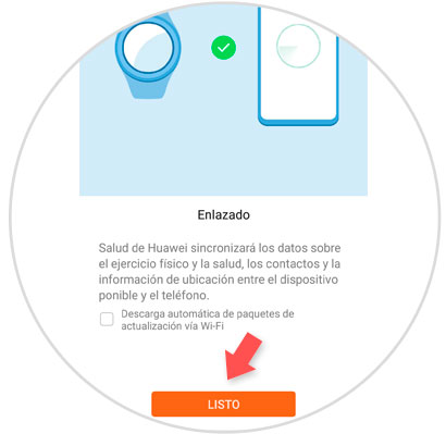 En la pantalla del reloj pulsa en el check azul para vincular el móvil al reloj.