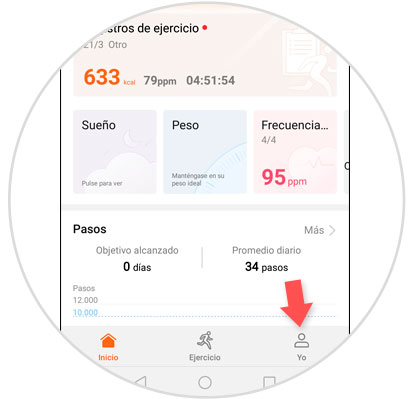 Dentro de la App Huawei health, que aparecerá con el nombre de “Salud”, pulsa en la pestaña “Yo” en la barra inferior.