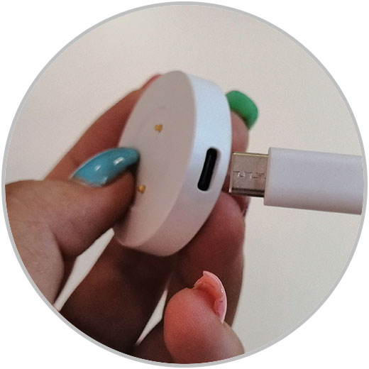 Ahora, une el extremo del USB tipo C con la base de carga para conectarlos.