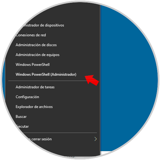 El otro método que nos ofrece Windows 10 es usar Windows PowerShell para tal fin, Por eso debemos ingresar como administradores dando clic derecho en el menú Inicio y seleccionar la opción adecuada: