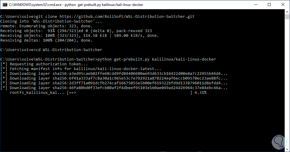 4. Instalar Kali Linux usando la terminal en Windows 10
