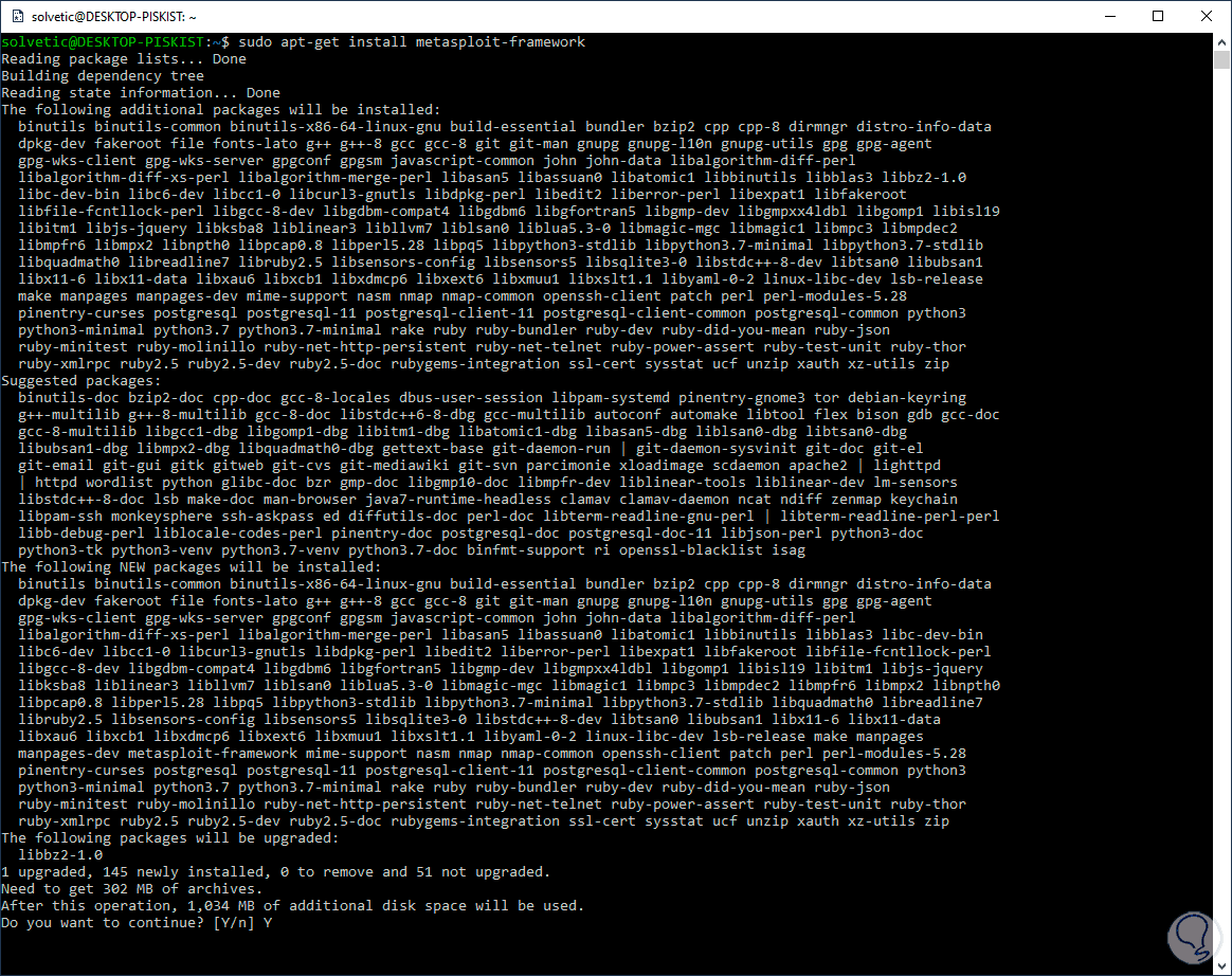 Ingresamos la letra Y para comenzar la instalación de las herramientas: