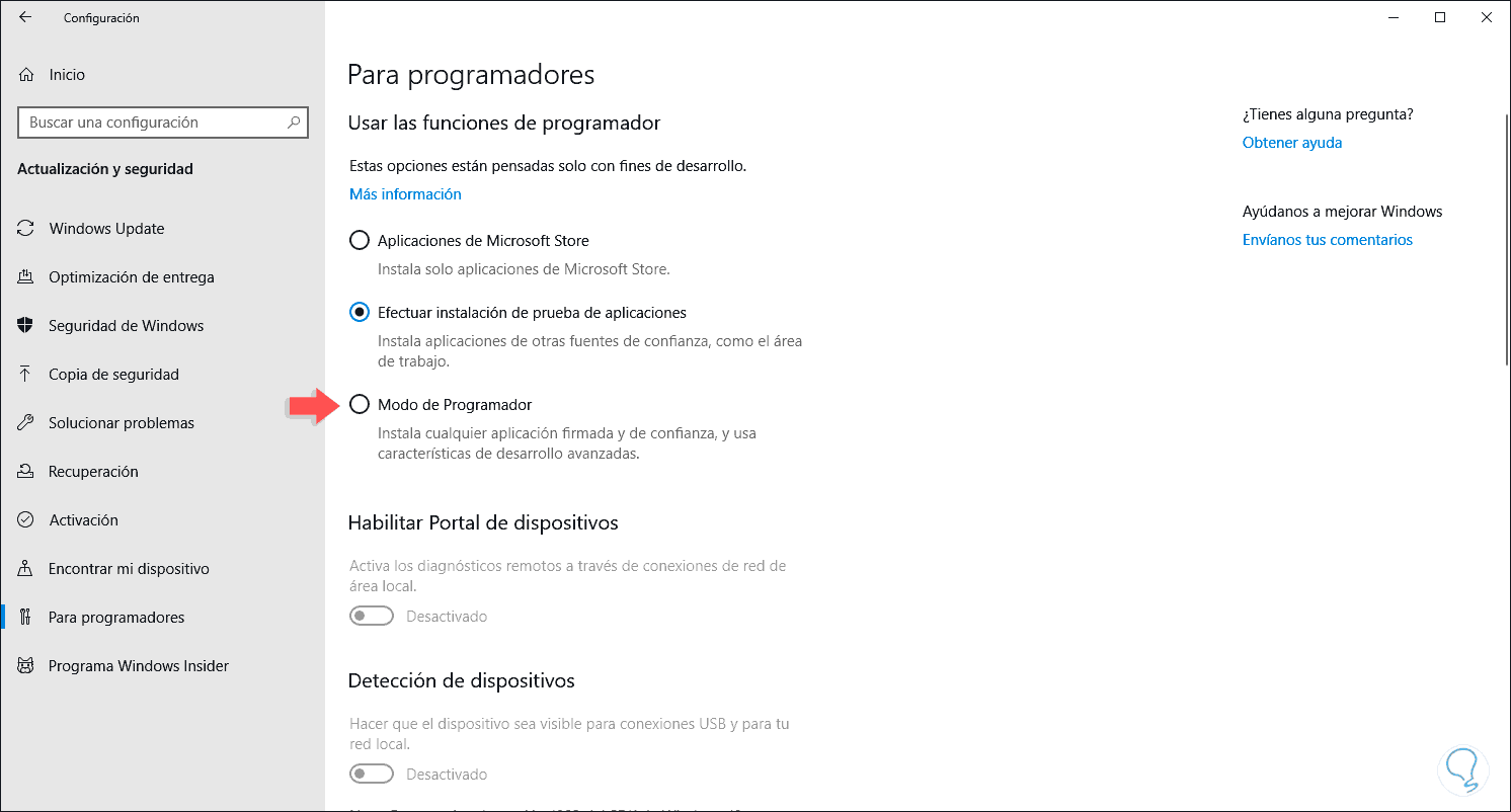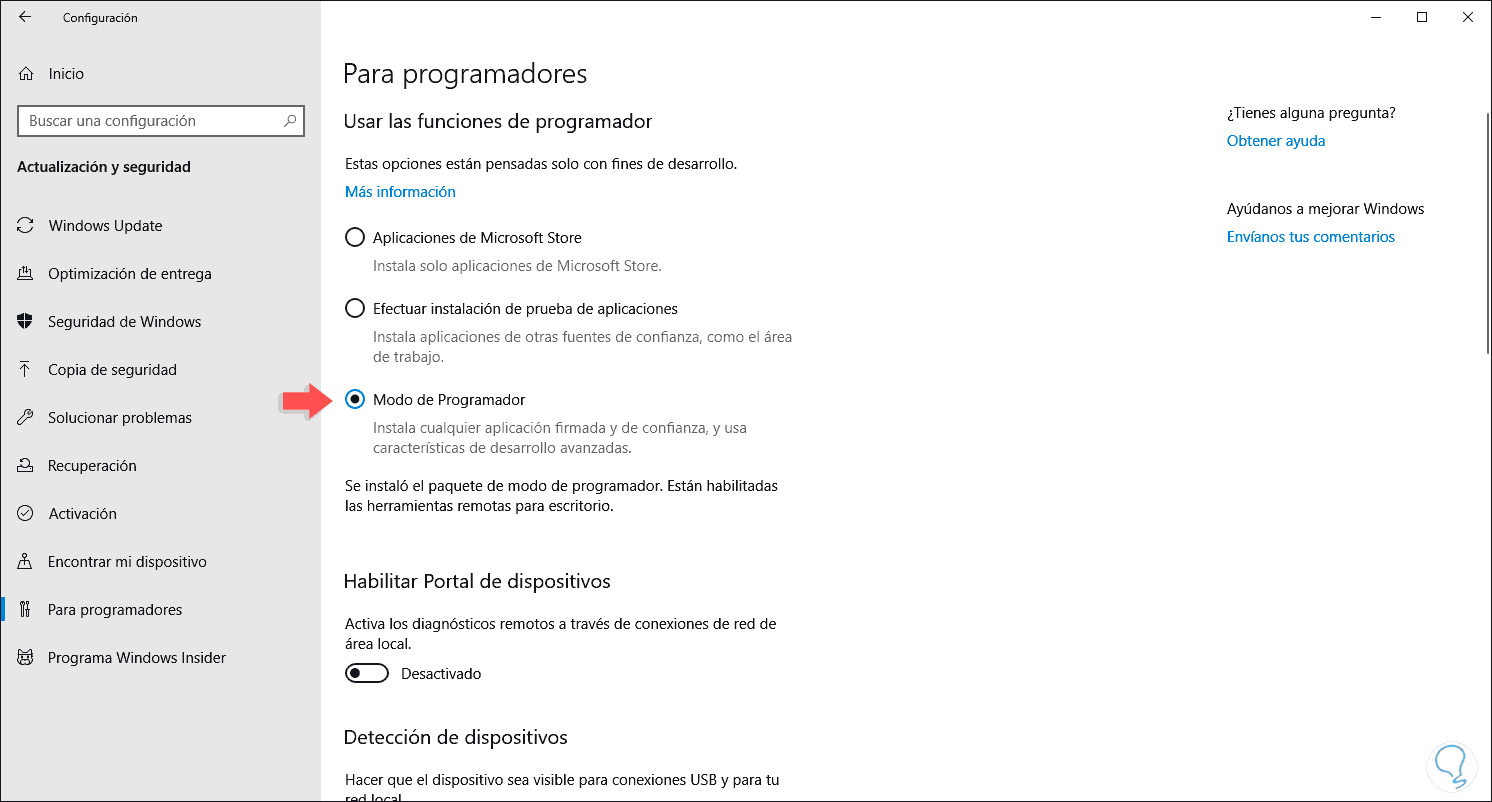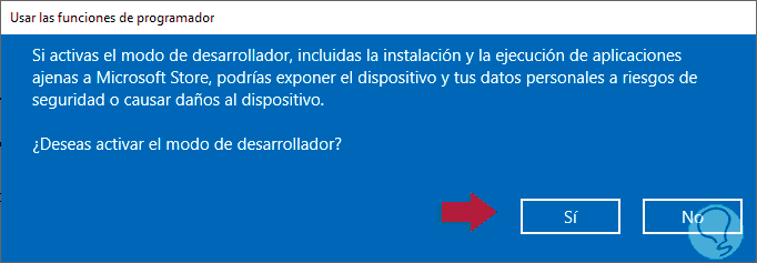 Allí activamos la casilla “Modo de Programador” y se desplegará el siguiente mensaje: