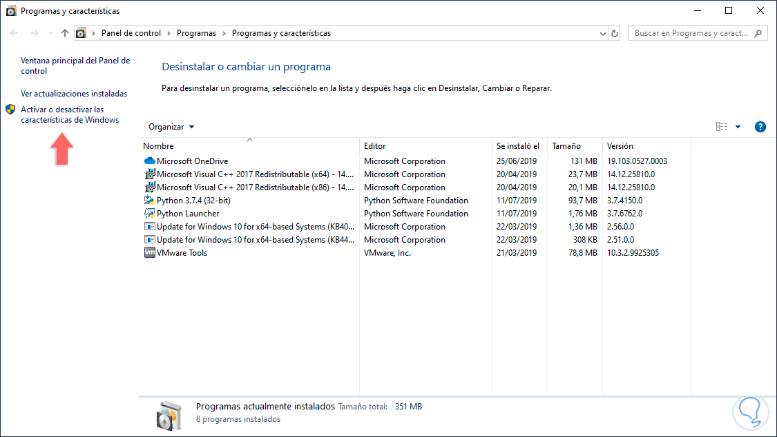 En primer lugar, podemos ir directamente a las características del sistema usando la combinación de teclas siguientes y ejecutar el comando appwiz.cpl: