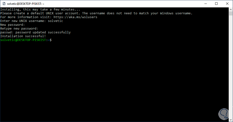Ahora, al ejecutar de nuevo lxrun /install veremos lo siguiente: