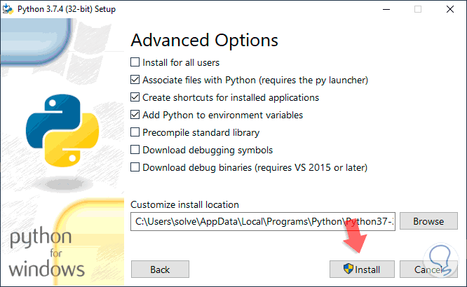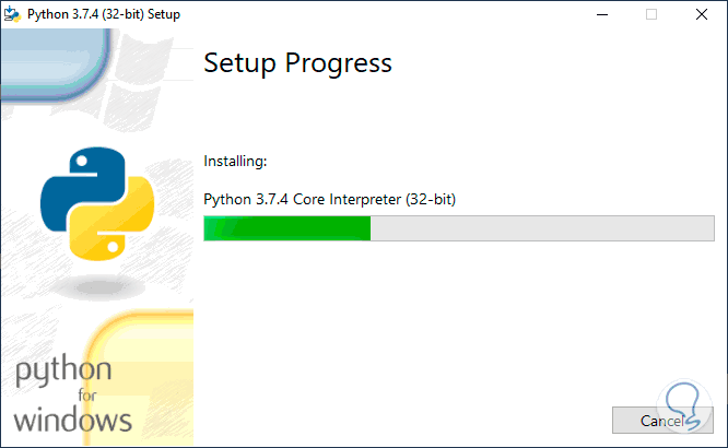 Pulsamos en Install para ejecutar la instalación de Python en Windows 10: