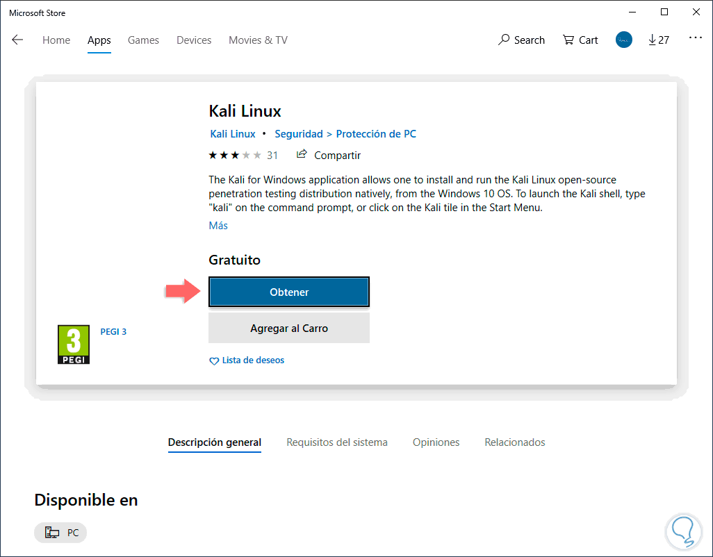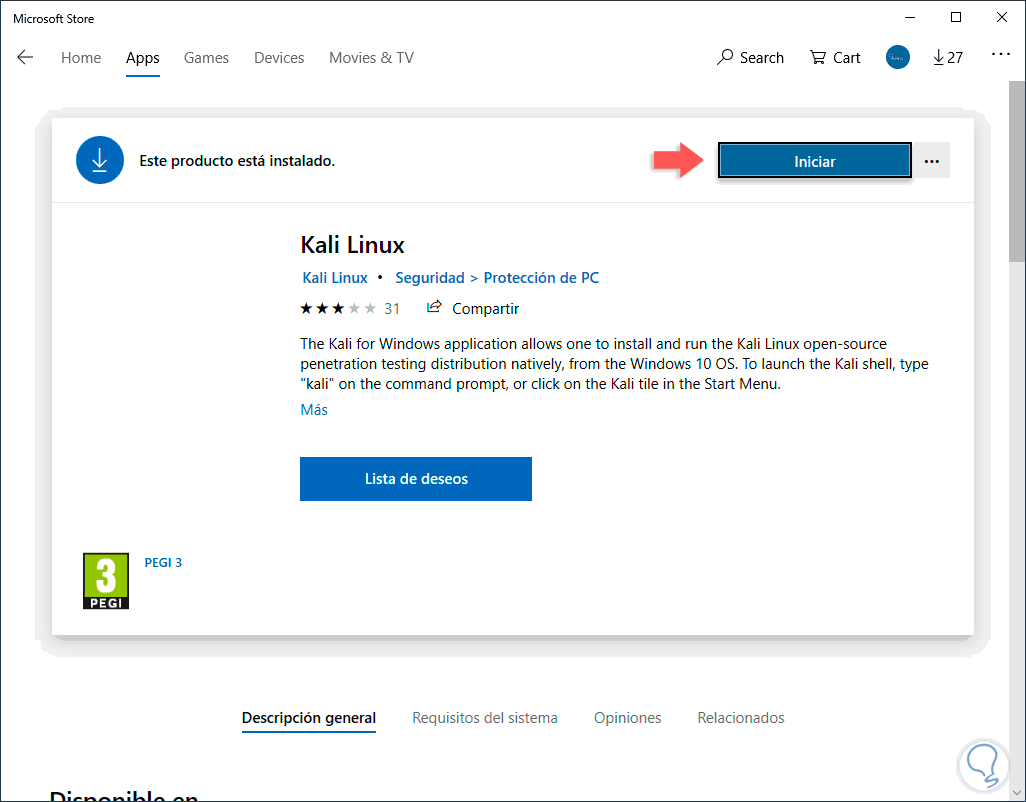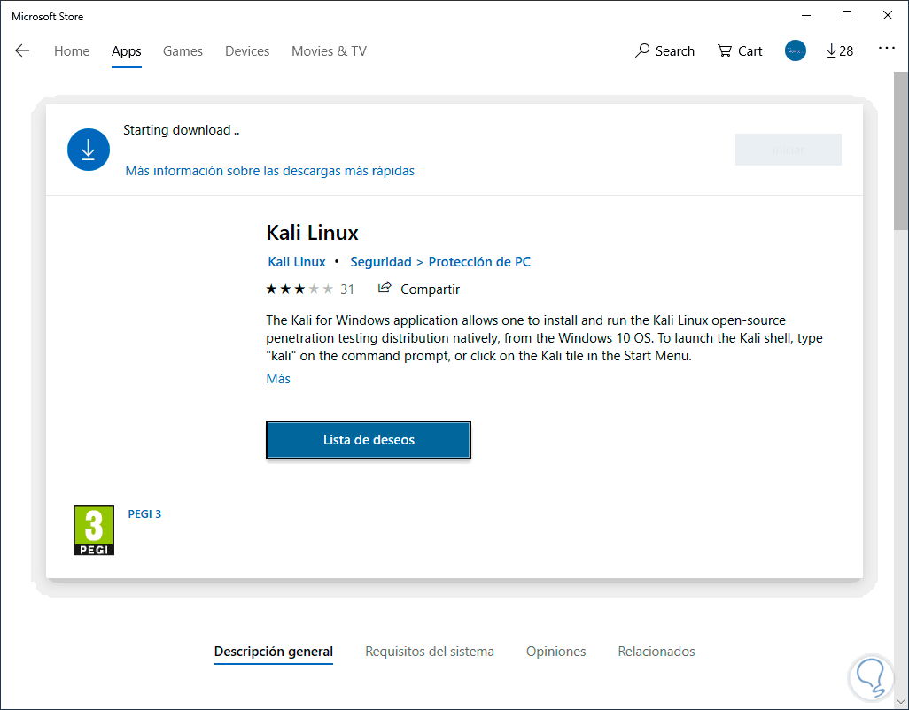 3. Instalar Kali Linux usando Windows Store en Windows 10