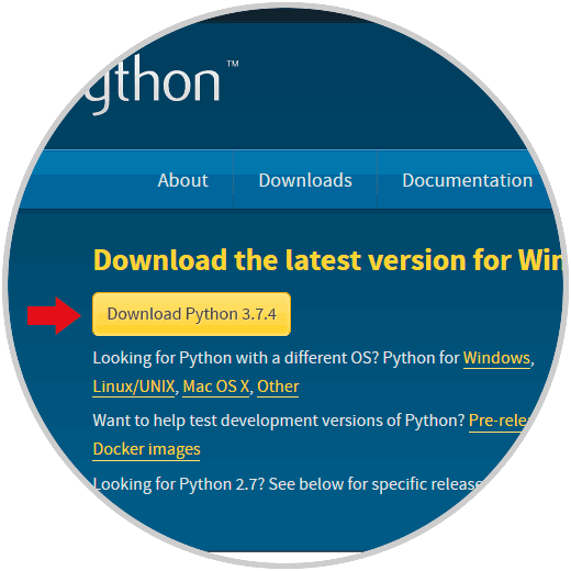 Allí damos clic directamente en el botón de descarga y procedemos con la instalación de Python 3.7: