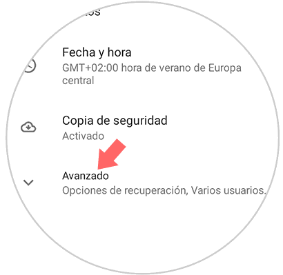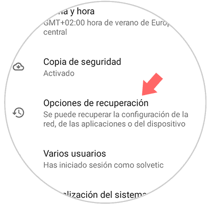Dentro de las opciones de Sistema, presiona Opciones de recuperación